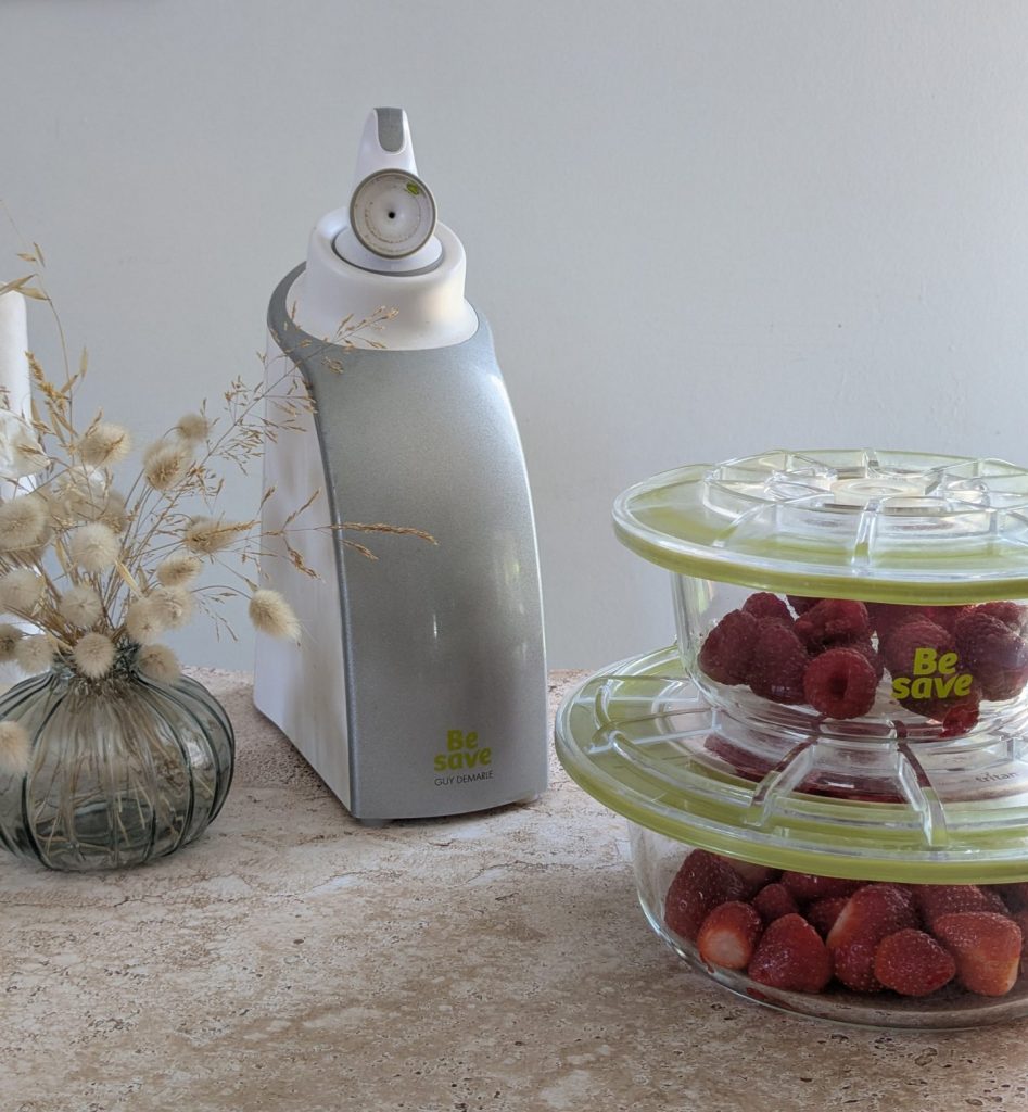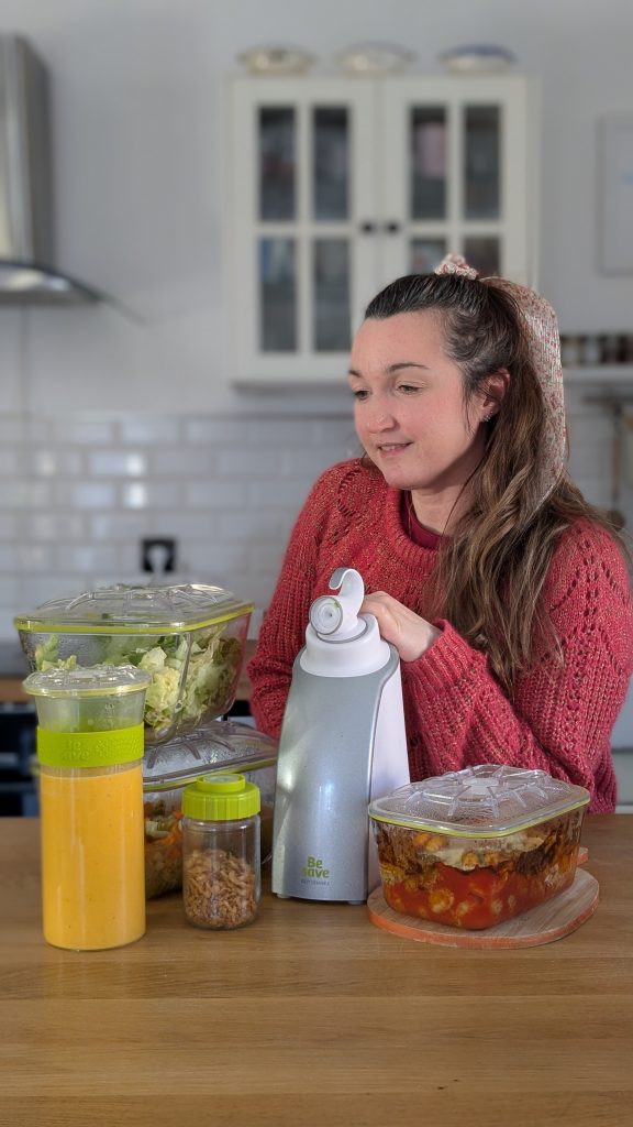 Pour prolonger la fraîcheur de mes préparations, j’utilise depuis des années la machine Be Save de Guy Demarle *. C’est mon secret pour conserver les plats plusieurs jours, garder toutes les saveurs, et même planifier des semaines sans courses ! Be Save me permet aussi de préparer à l’avance les petits pots de ma fille, de conserver les restes sans perte, et d’éviter le gaspillage alimentaire.