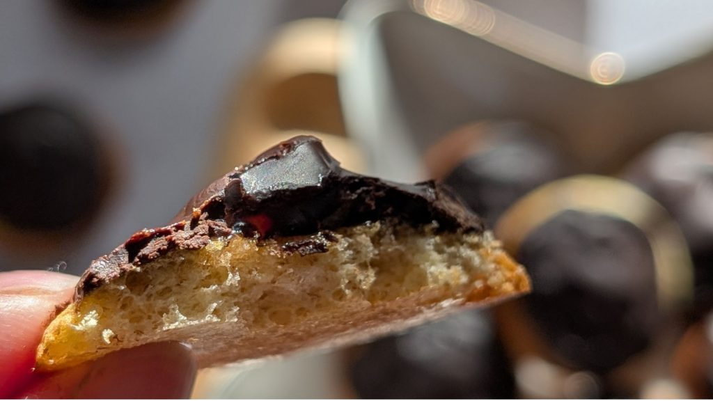 Elle n’altère pas le goût, mais elle abaisse légèrement le point de fusion du chocolat et lui donne une texture plus fluide, parfaite pour enrober uniformément. De plus, elle permet à la coque de rester bien cassante une fois refroidie. Si tu n’as pas d’huile de coco, remplace-la par une cuillère à café de beurre de cacao.